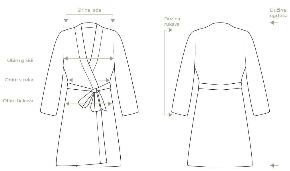 Ogrtač od satena u dezenu inspirisanom prolećem. Nežan, otmen i elegantan ogrtač sa dugim rukavima. Ležerno pada, a struk se naglašava podesivom trakom od istog materijala. Možete ga nositi u kućnoj varijanti ili ga ukombinovati uz neku odevnu kombinaciju za napolje.